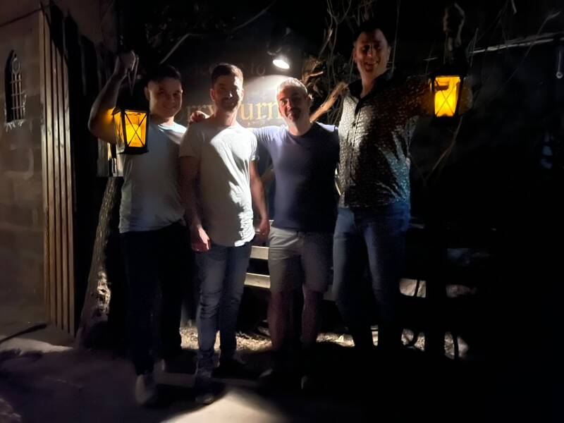 We worden meegenomen naar de tavern voor wat water, de wc en de broodnodige uitleg voor we Chapel & Catacombs gaan spelen.